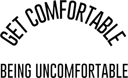 We say get comfortable being uncomfortable because getting uncomfortable is the world we live in. If you're interested in joining us as a client, jump in; the water is freezing cold.